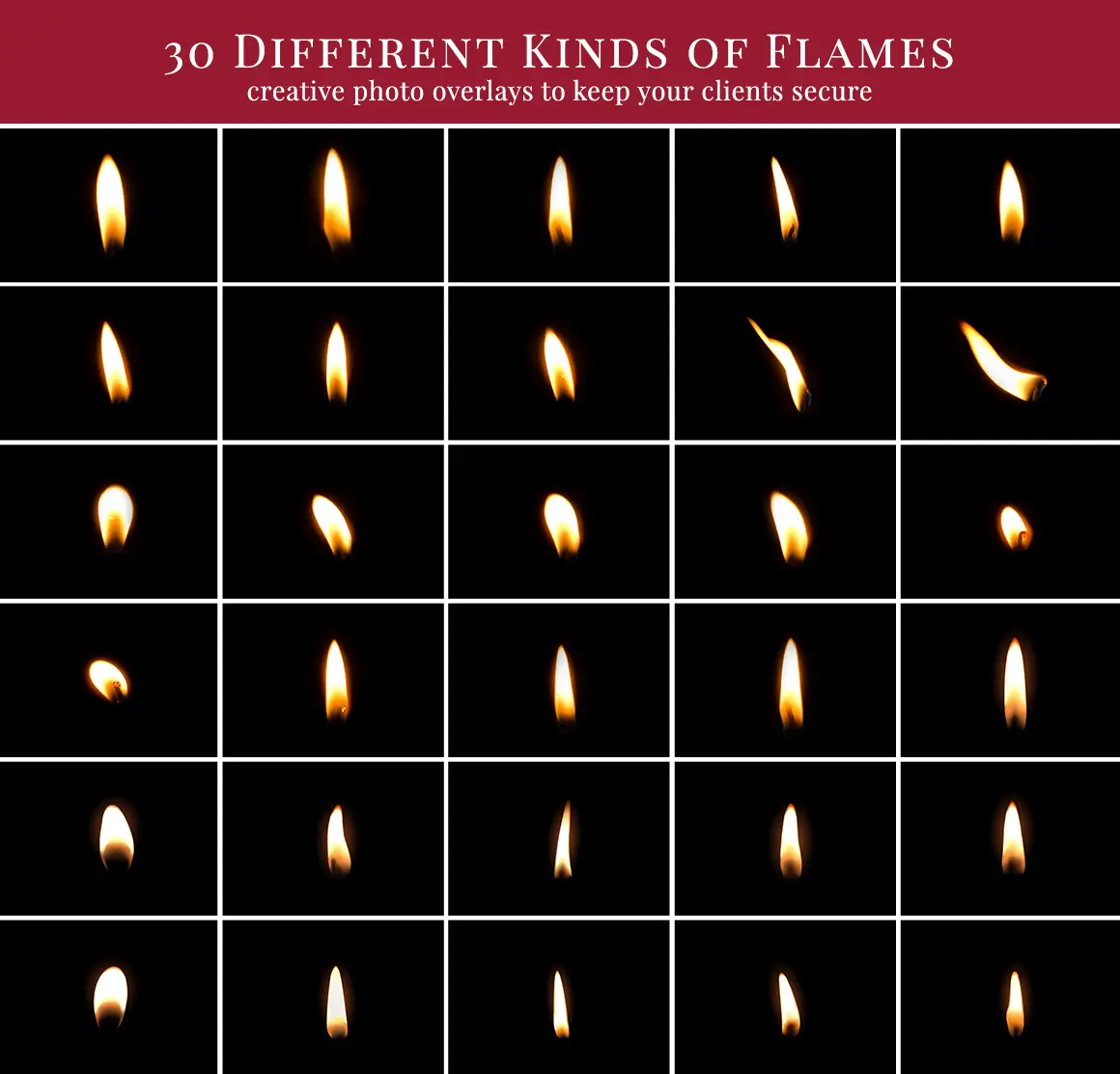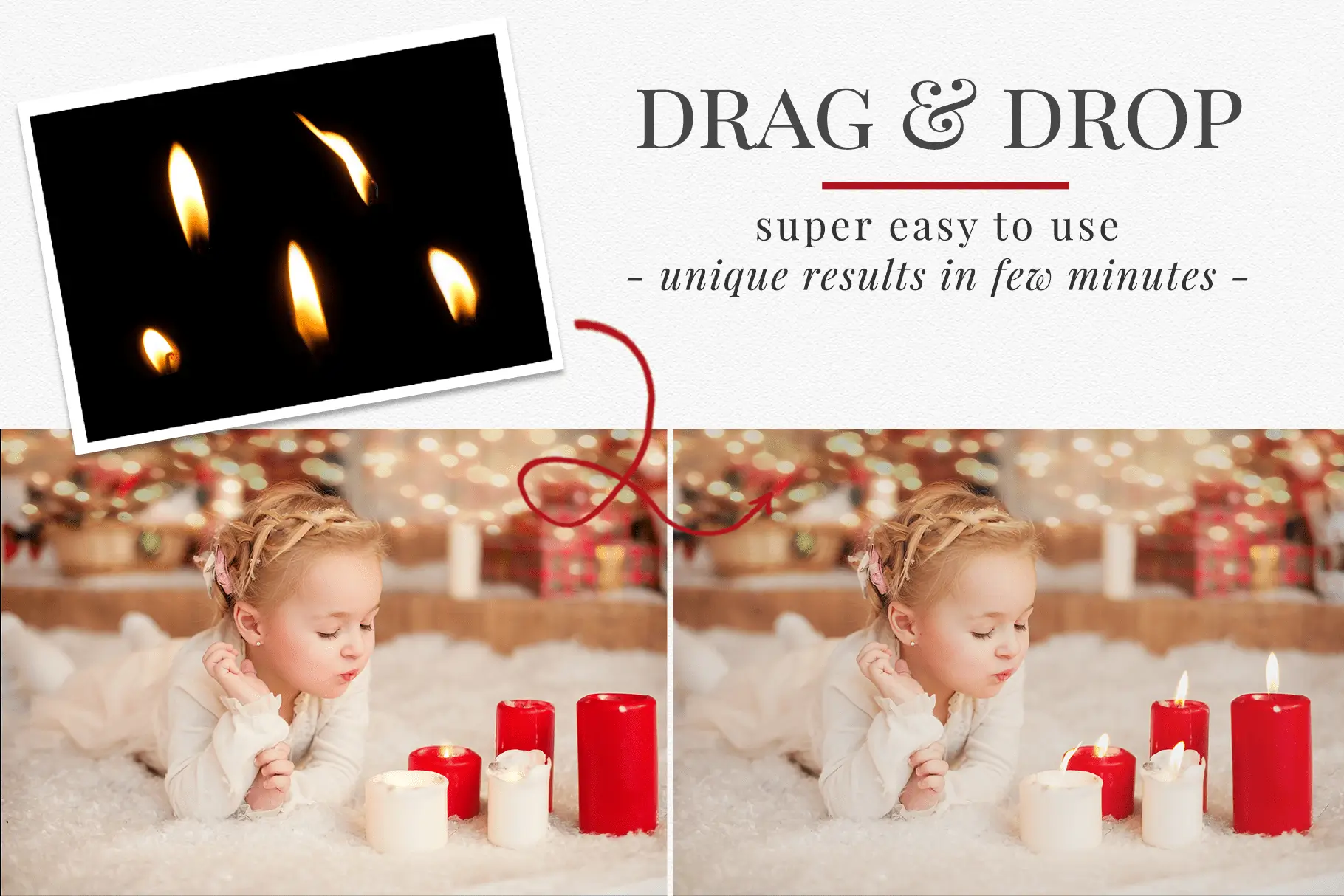 - 30 různých foto overlays – efekt zapálené svíčky (plamínky)