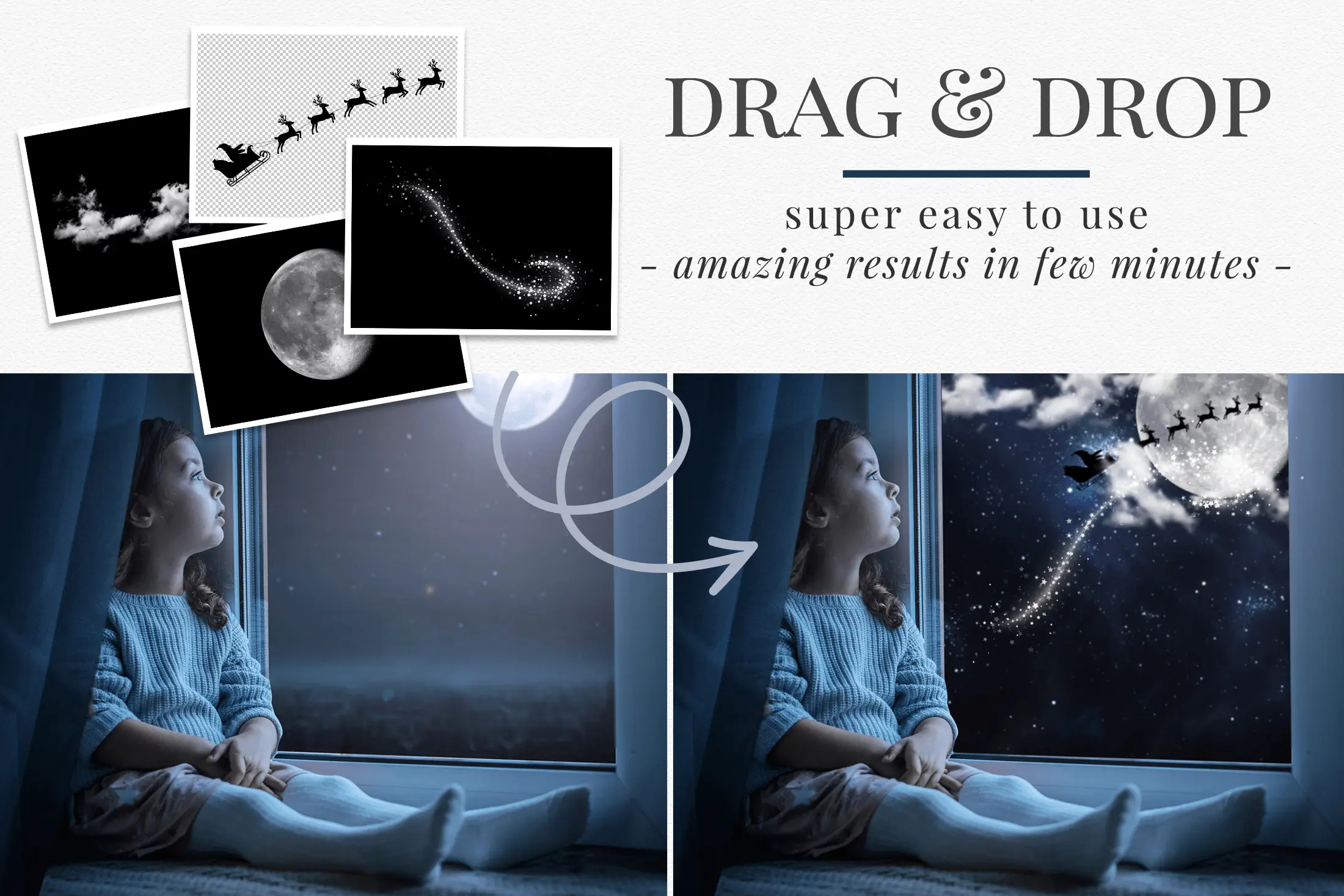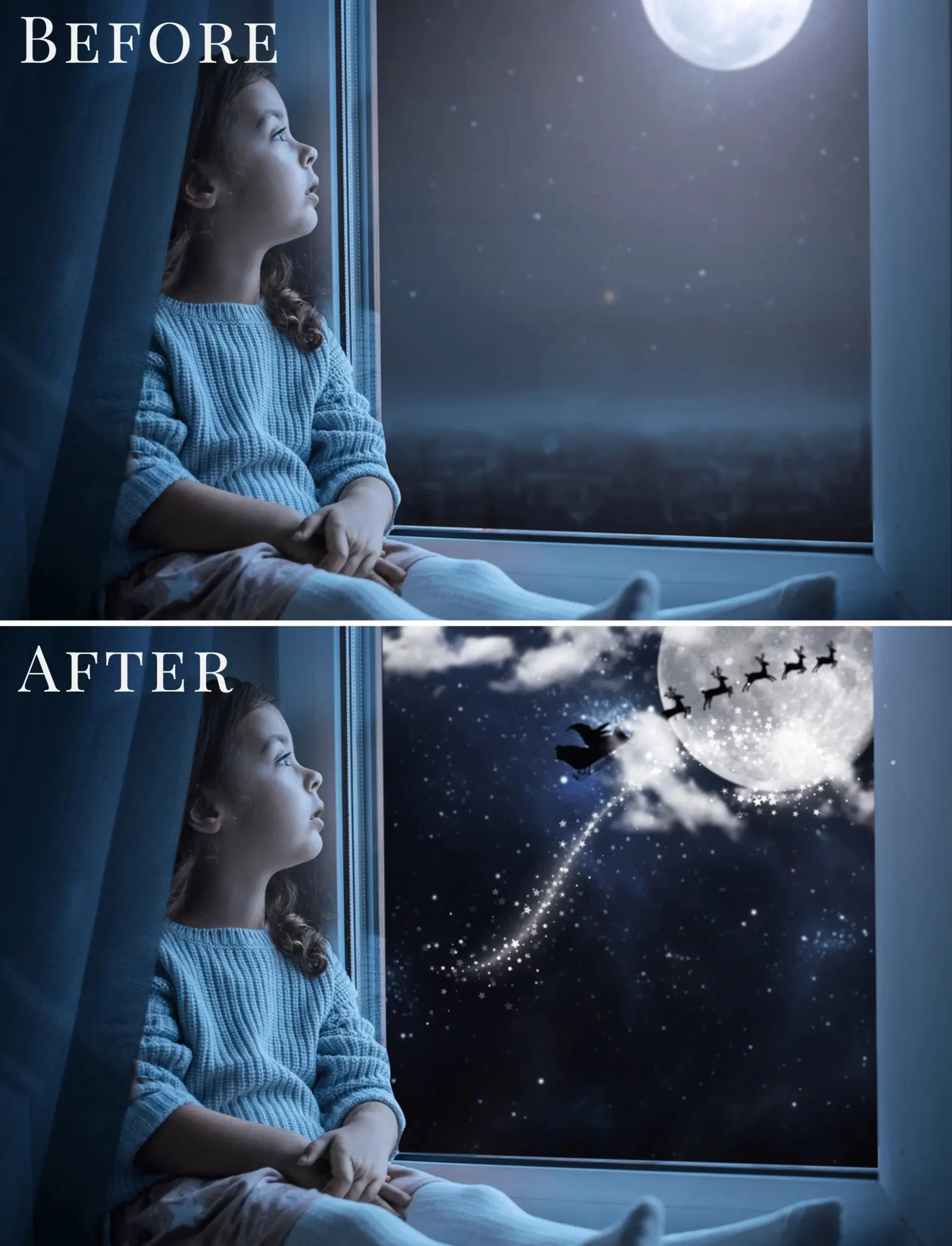 Tento balíček obsahuje 30 kreativních foto overlays s motivy vánoční oblohy.