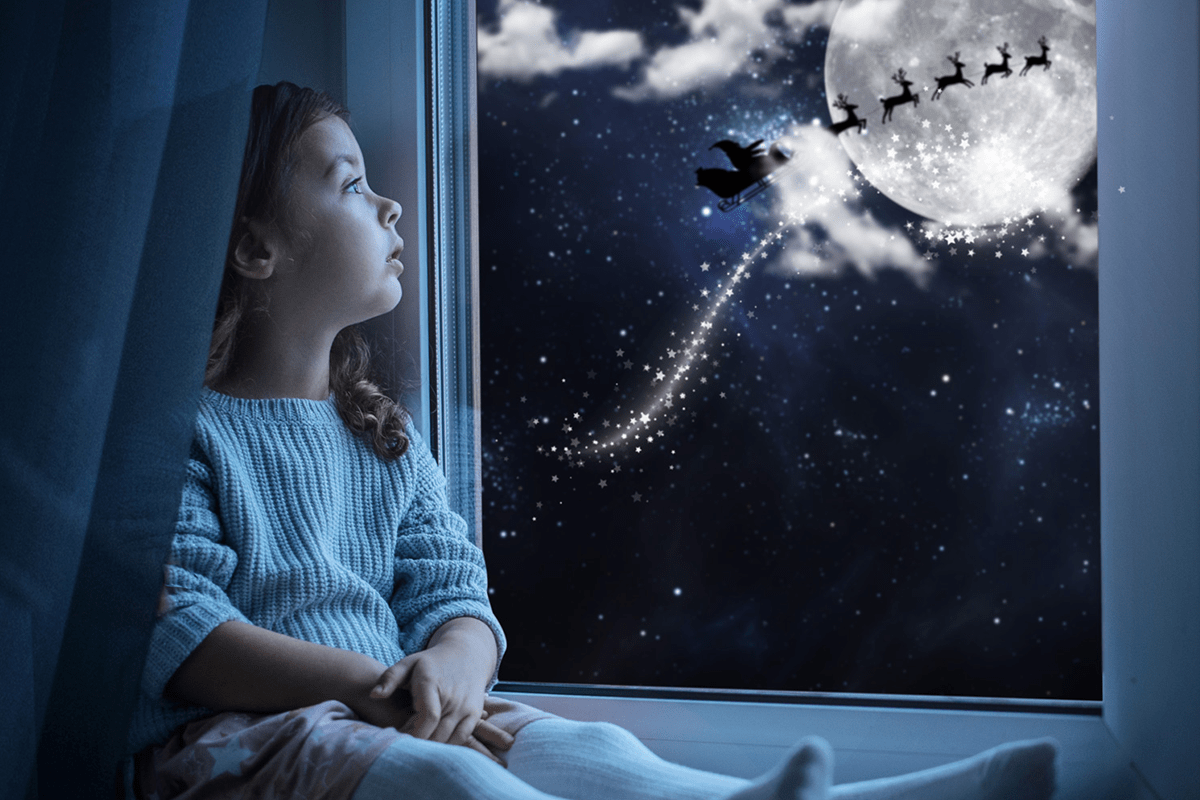- efekt pohádkové vánoční oblohy – Santa se saněmi, měsíc, hvězdy…