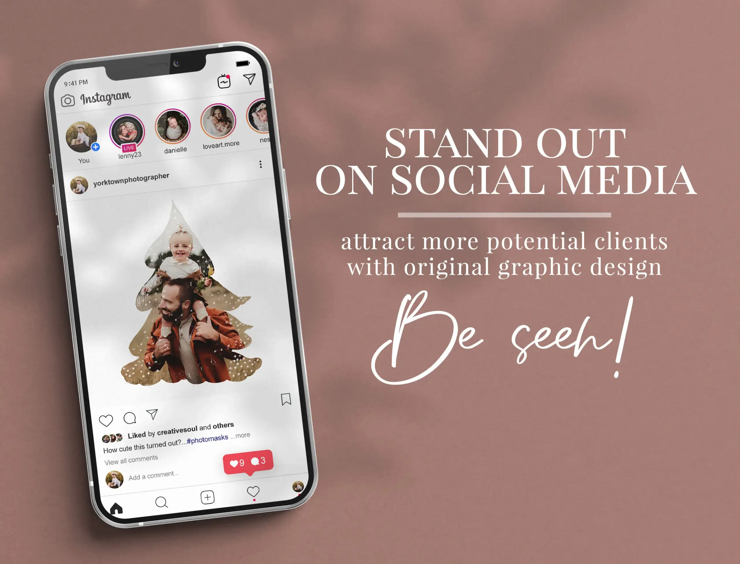 Prezentujte své fotky kreativně a využijte masku pro tvorbu přání, oznámení nebo jako originální obraz, který bude zdobit zeď. Skvěle se hodí i pro příspěvky na Instagram.