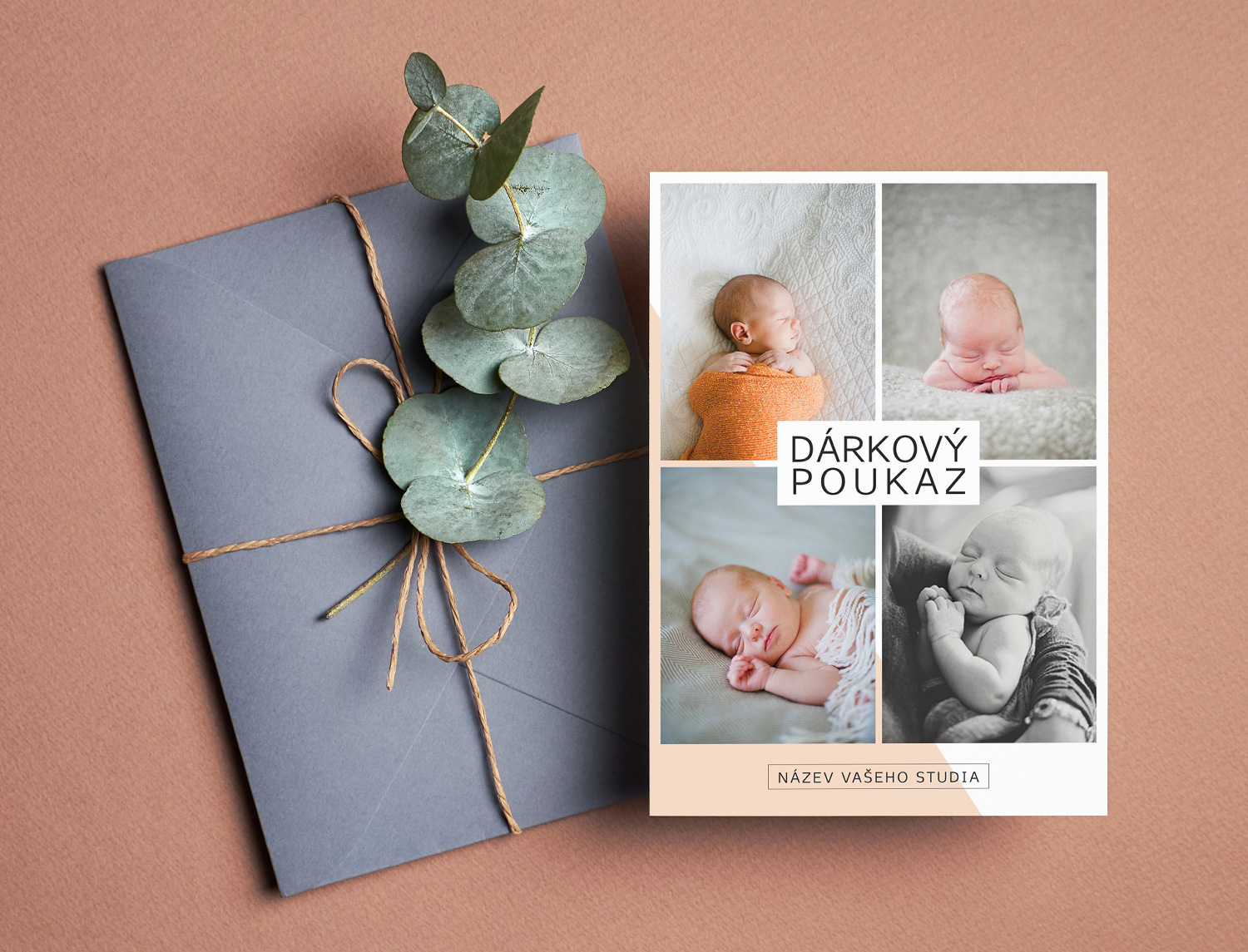 Designová šablona dárkového poukazu na focení. Zachraňte vaše klienty krásným last minute dárkem.