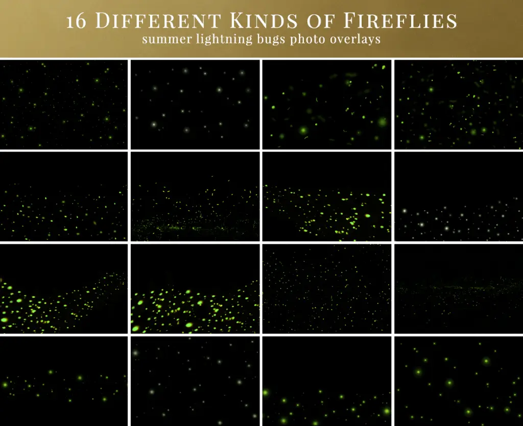 Balíček obsahuje 16 různých druhů overlays se světluškami.