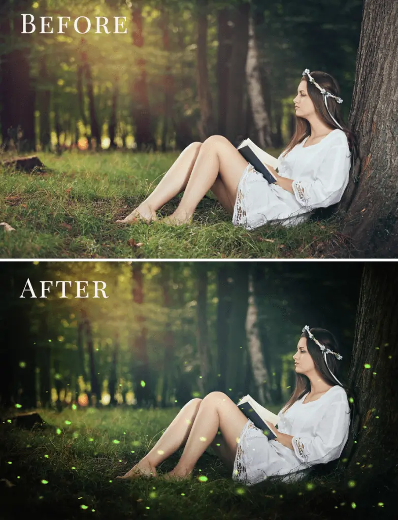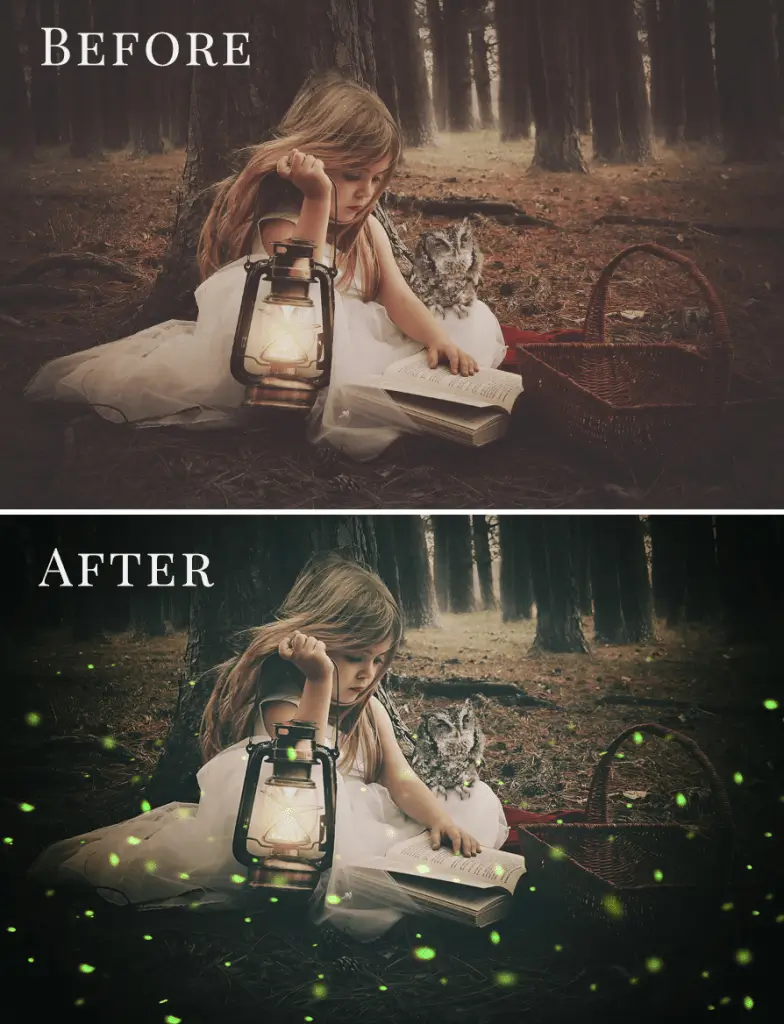 Forest Fireflies světluškové overlays lze použít v programech: Photoshop CS, Photoshop Elements, Zoner & Gimp.