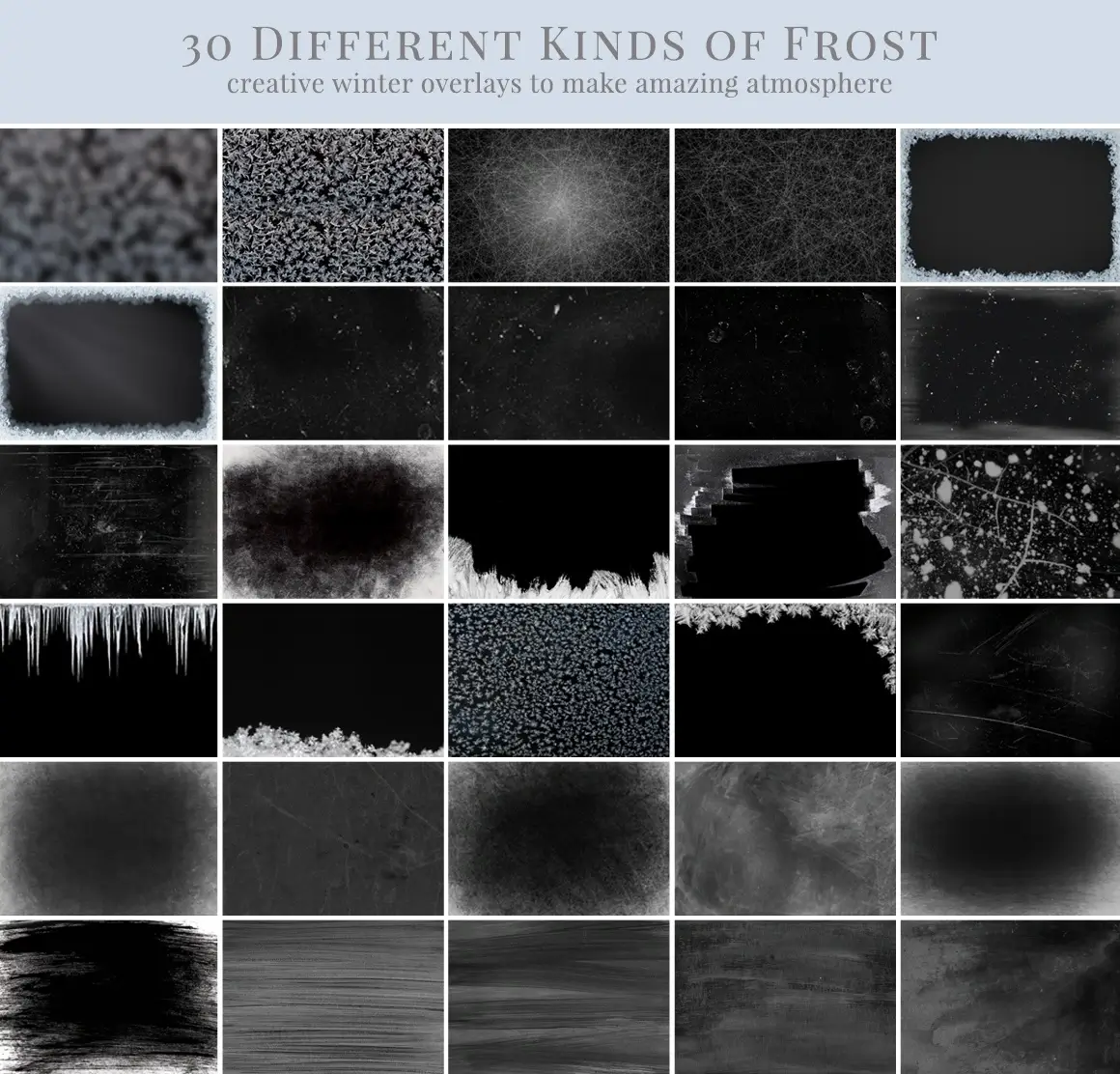 Balíček obsahuje 50 různých druhů overlays se zimní tématikou.