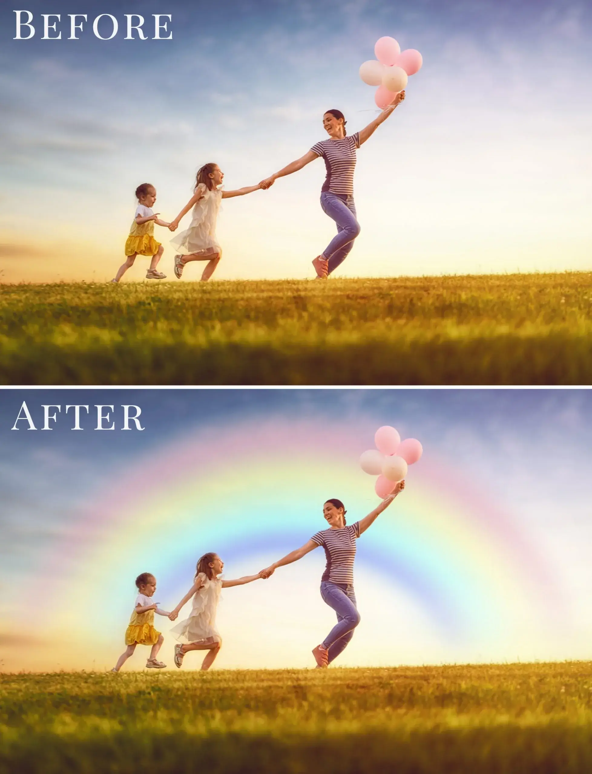 Kolekci 42 různých foto overlays s motivem duhy využijete především pro jarní focení dětí, rodin a portrétů.