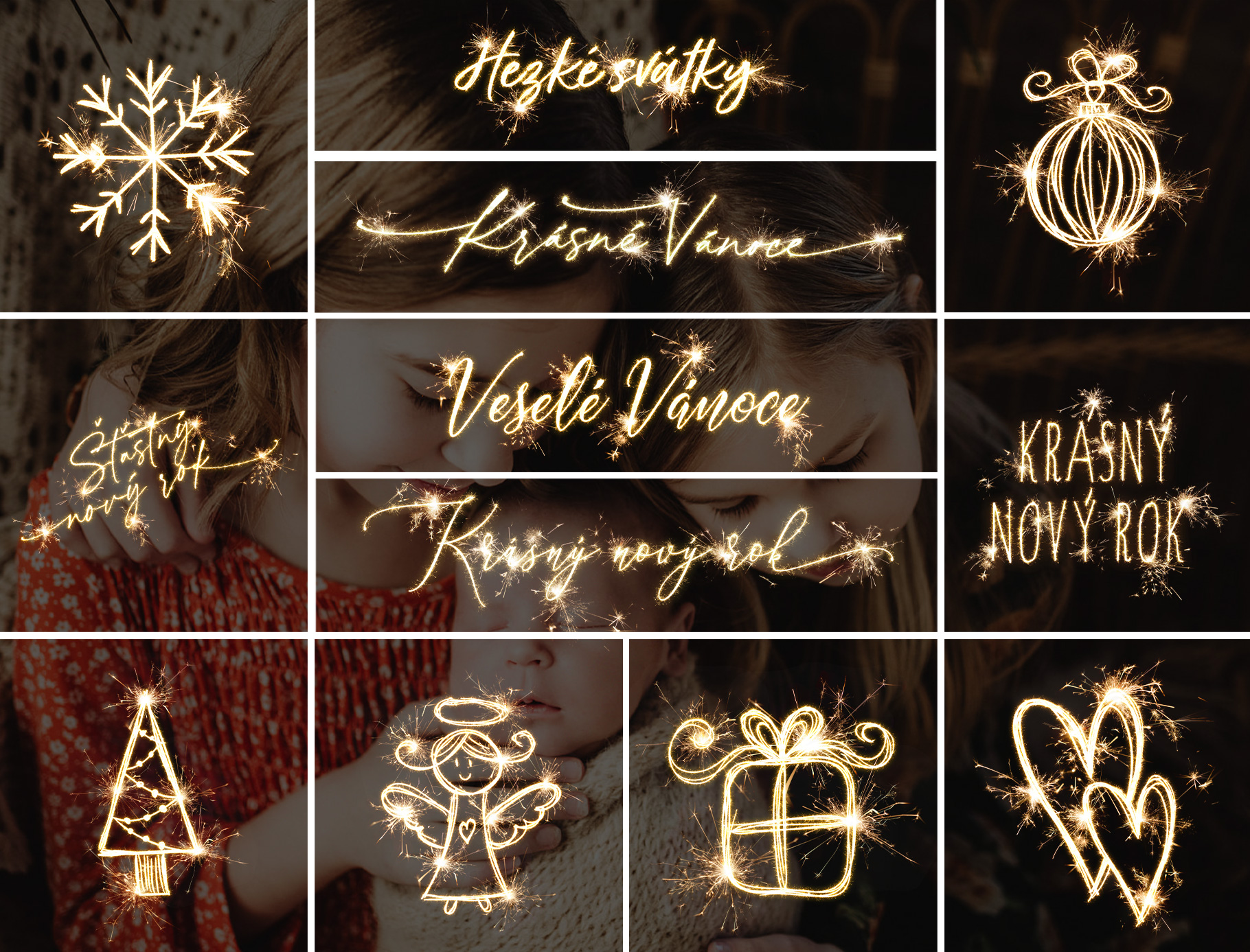 - 12 vánočních textů a obrázkových motivů v prskavkovém designu