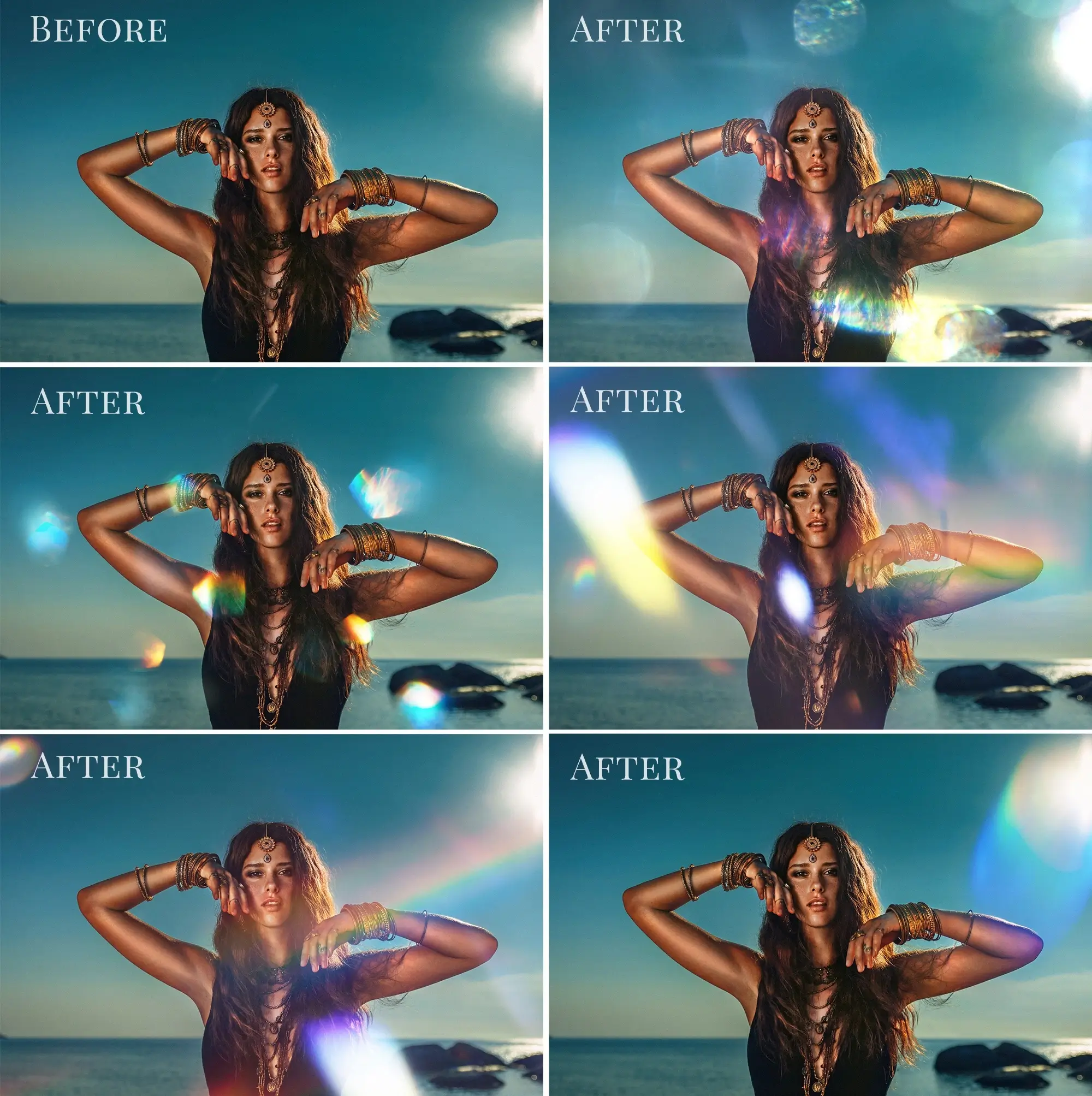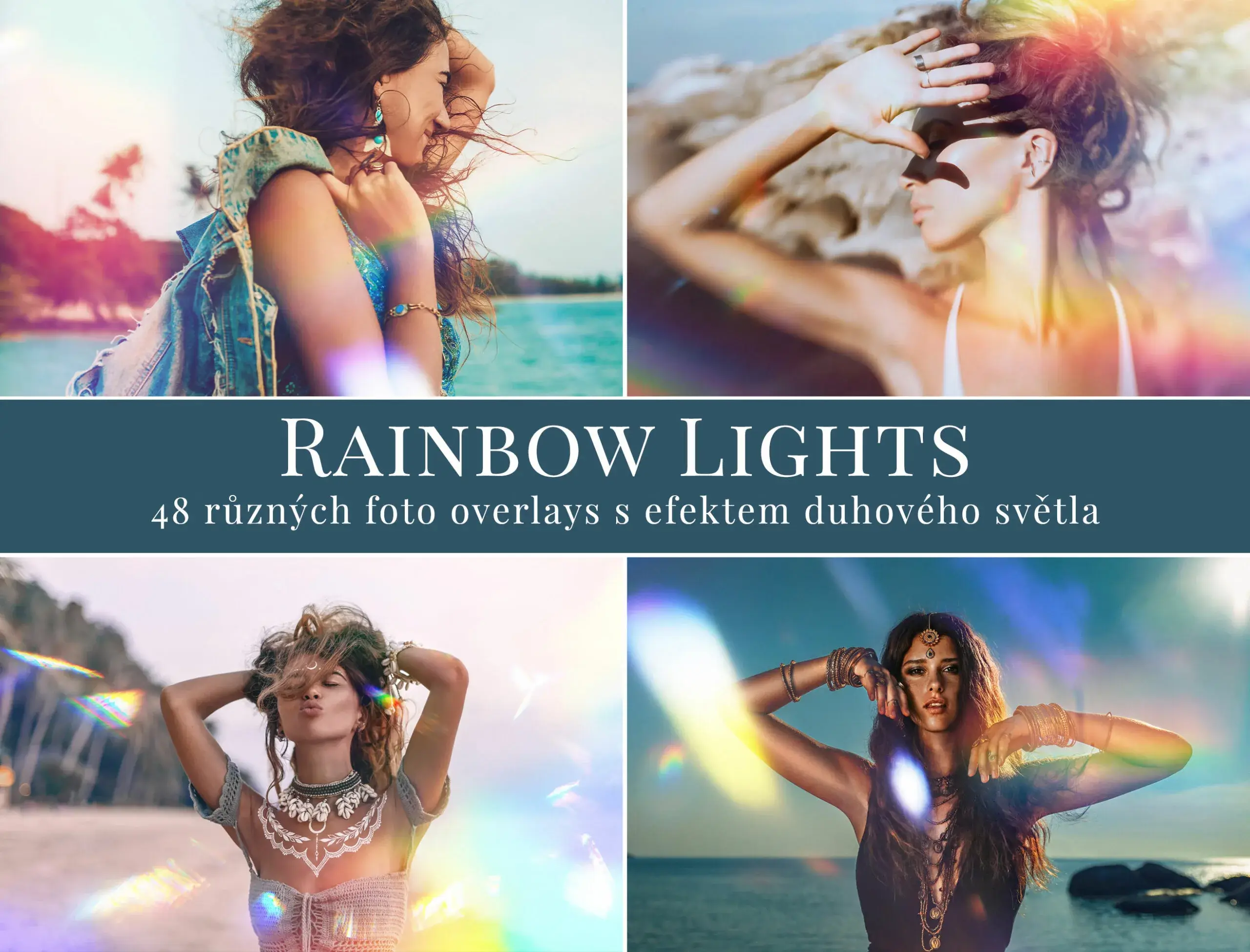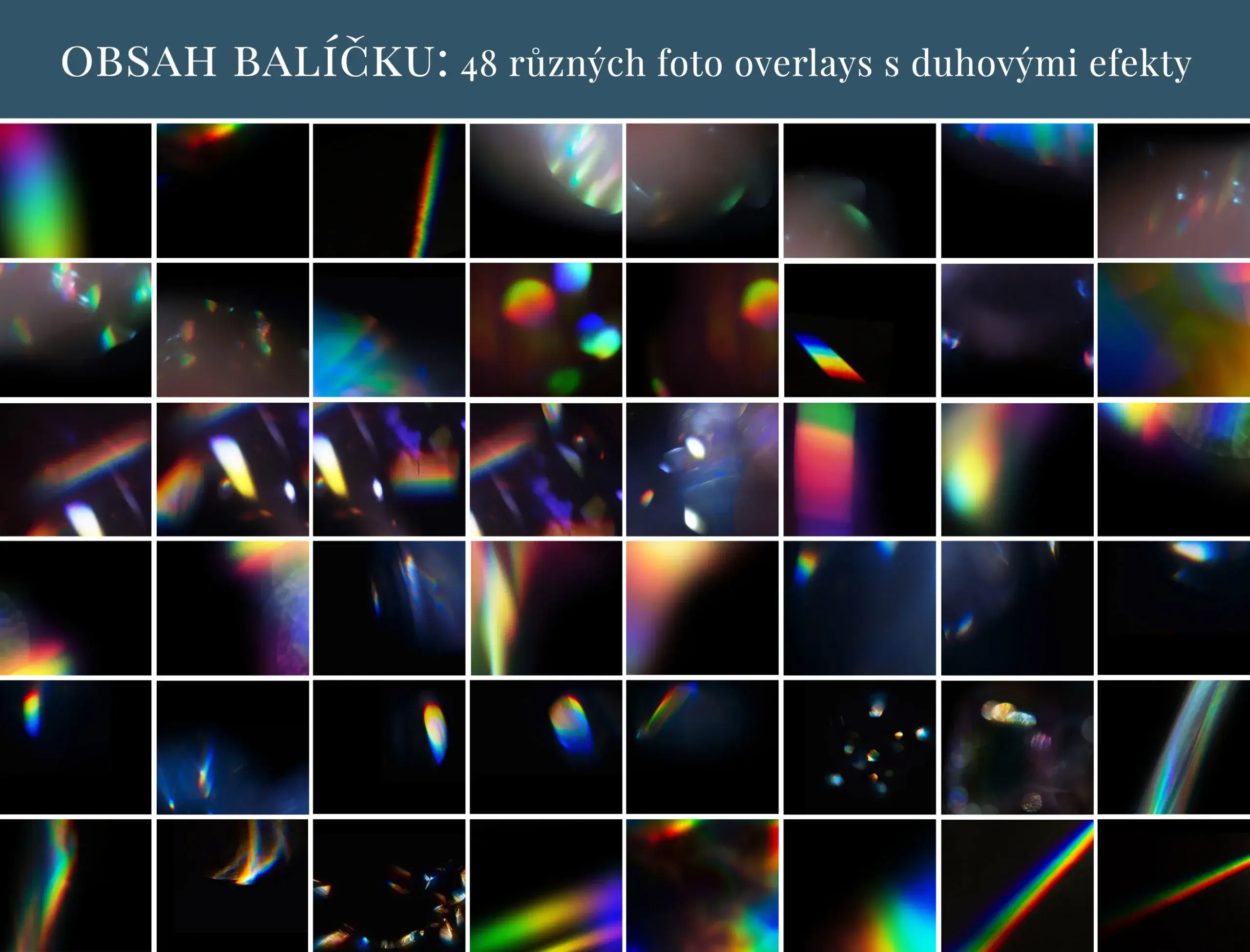 Balíček 48 různých foto overlays s efekty duhového světla.