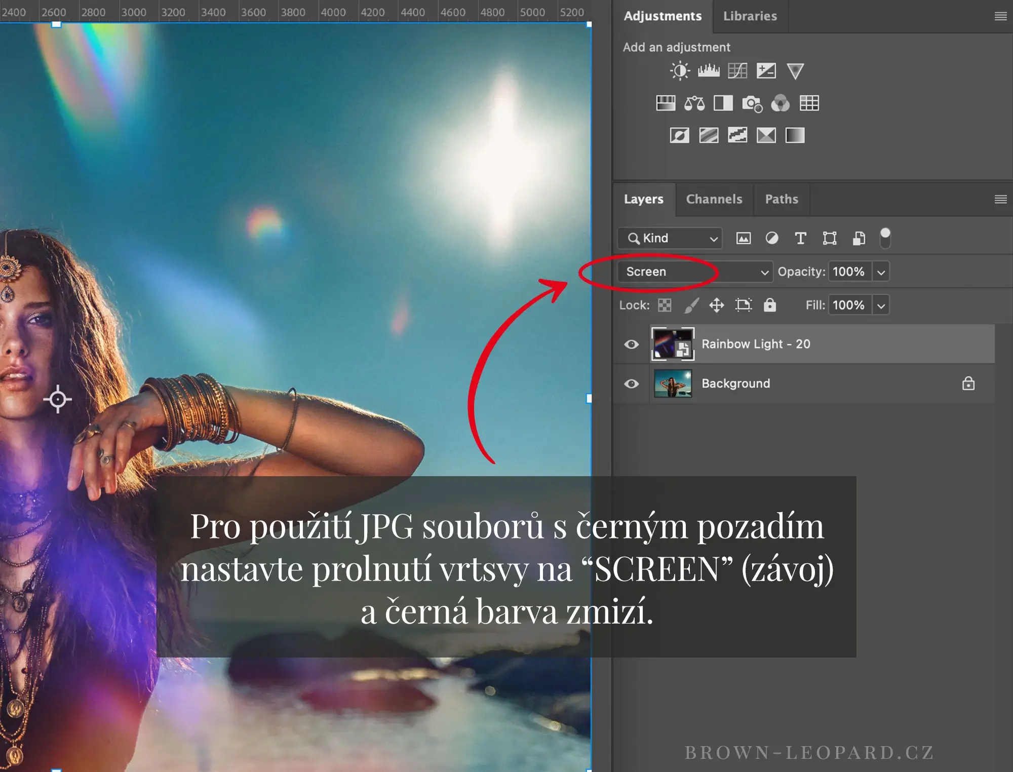 designy mají černé pozadí, nastavte proto prolnutí vrstvy na SCREEN (závoj) a černá barva zmizí
