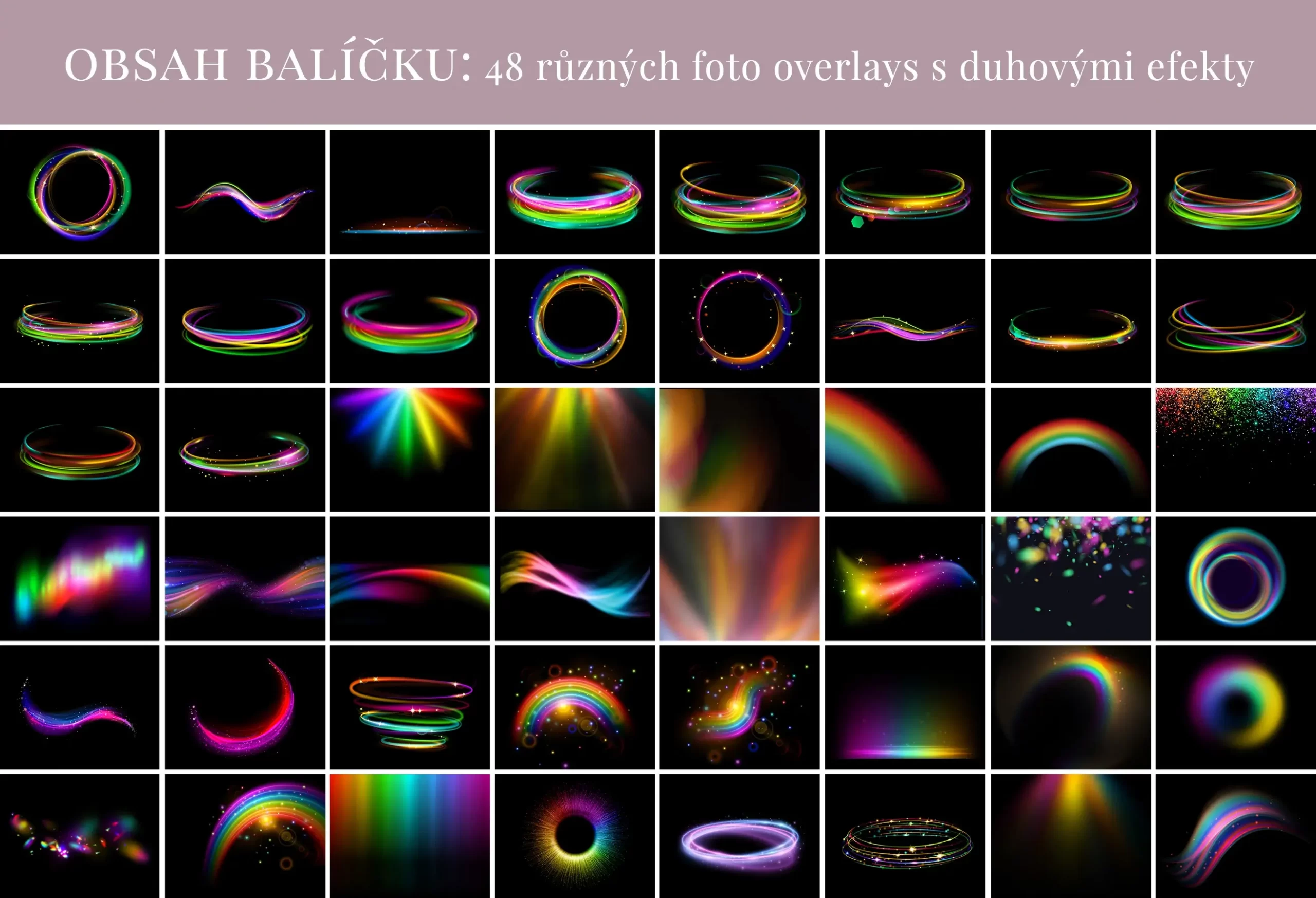 - 48 různých foto overlays – světla s duhovými efekty