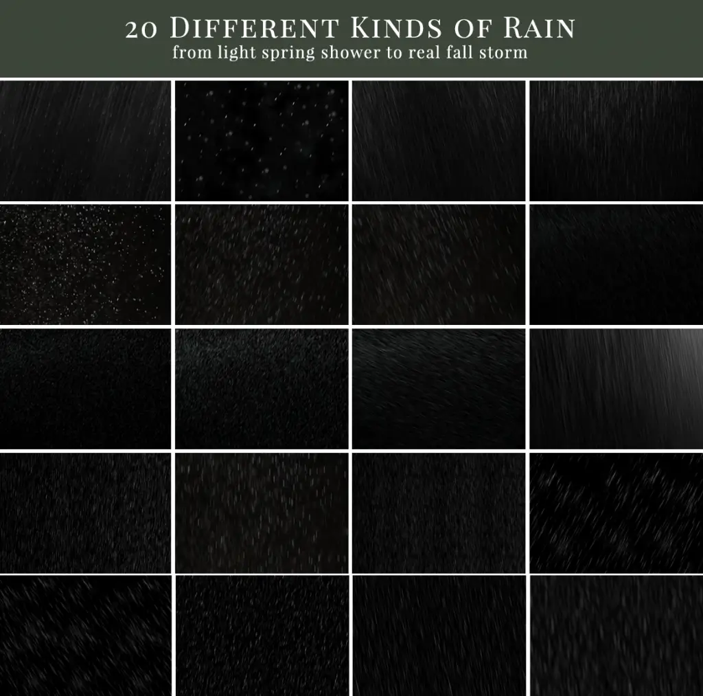 - 20 foto overlays s různou intenzitou deště