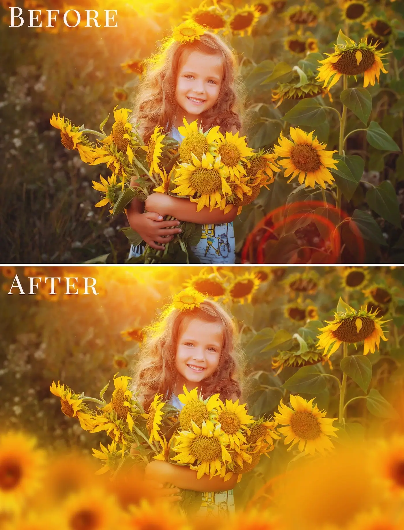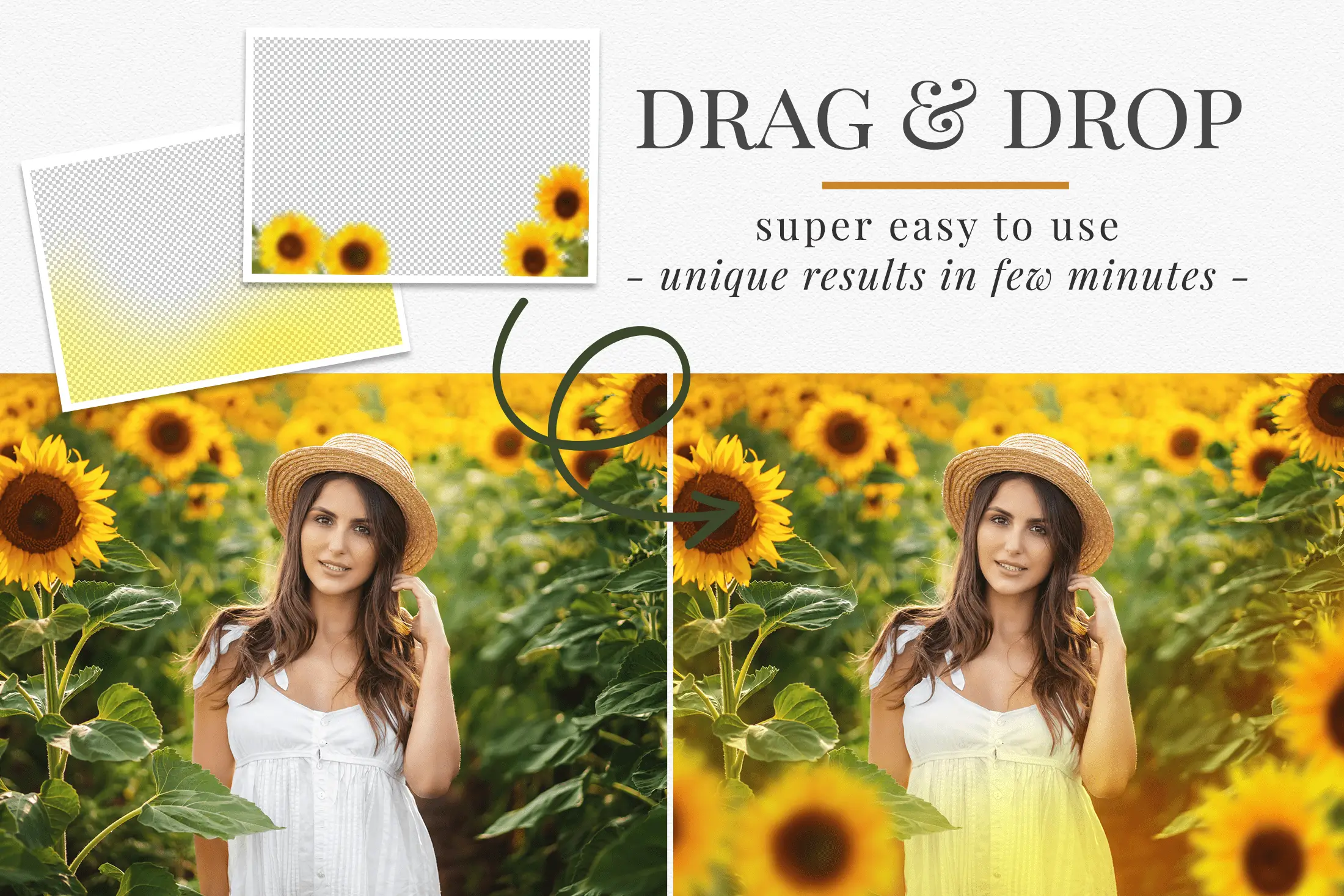 Balíček obsahuje 60 kreativních foto overlays s motivem slunečnic.