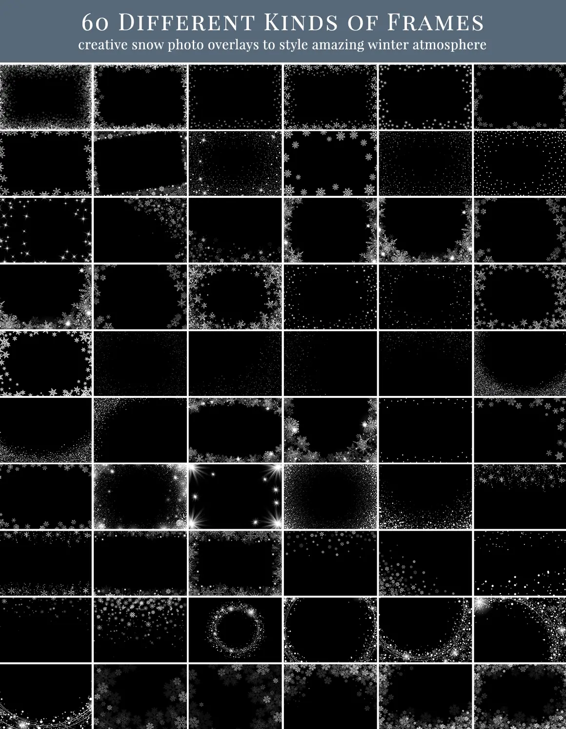 - 60 různých foto overlays – rámečky se sněhovými vločkami