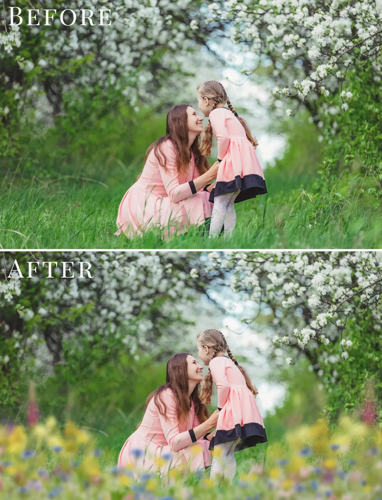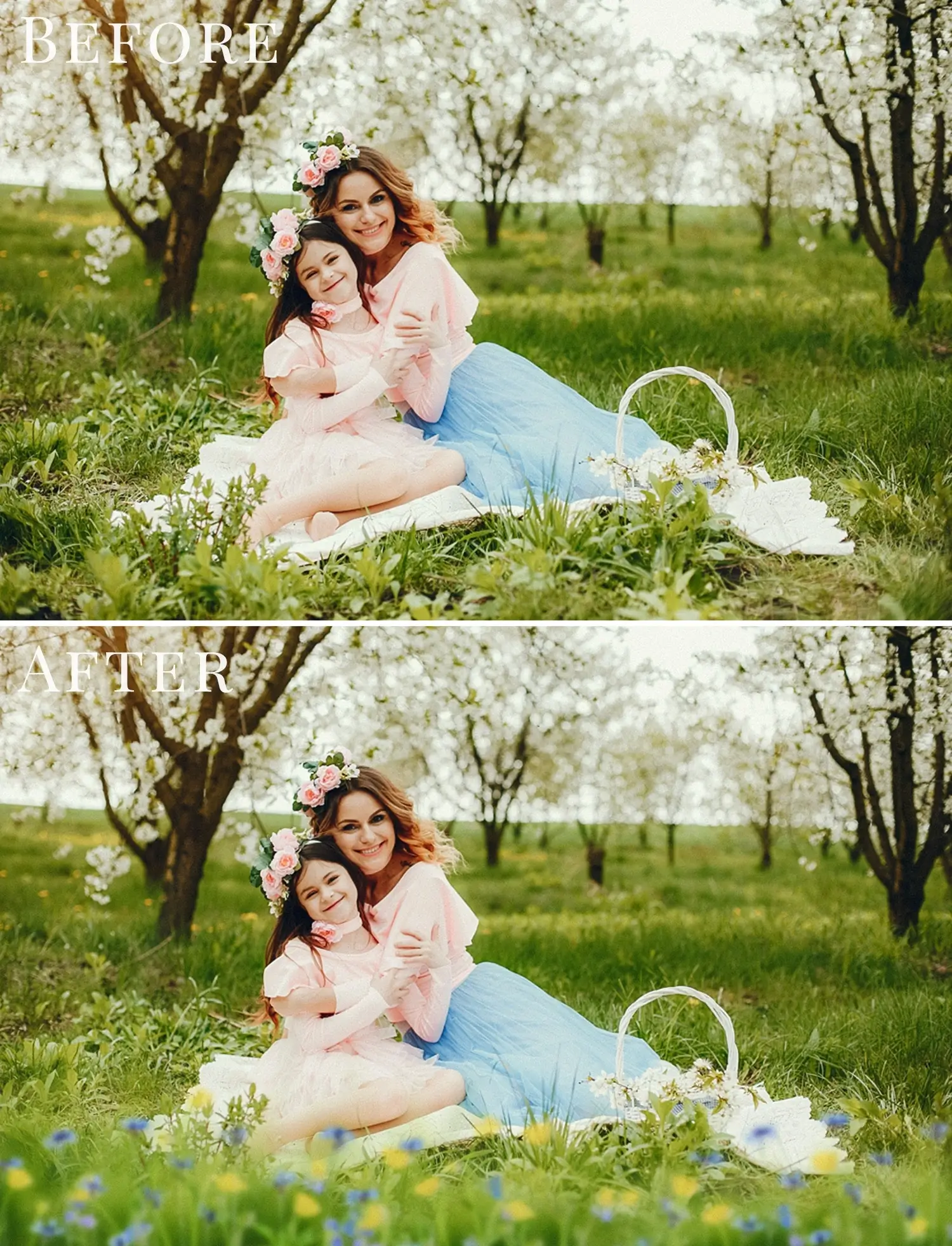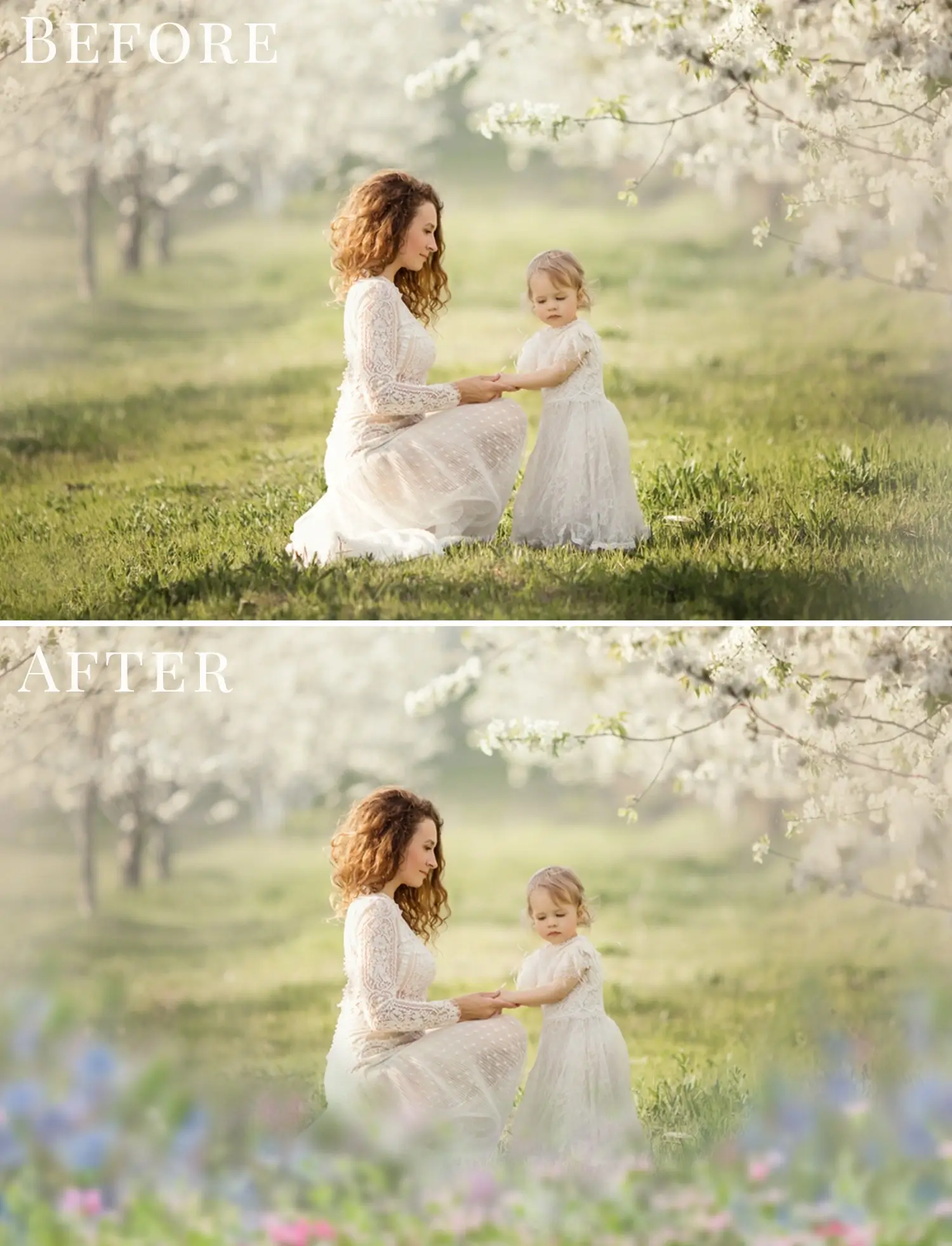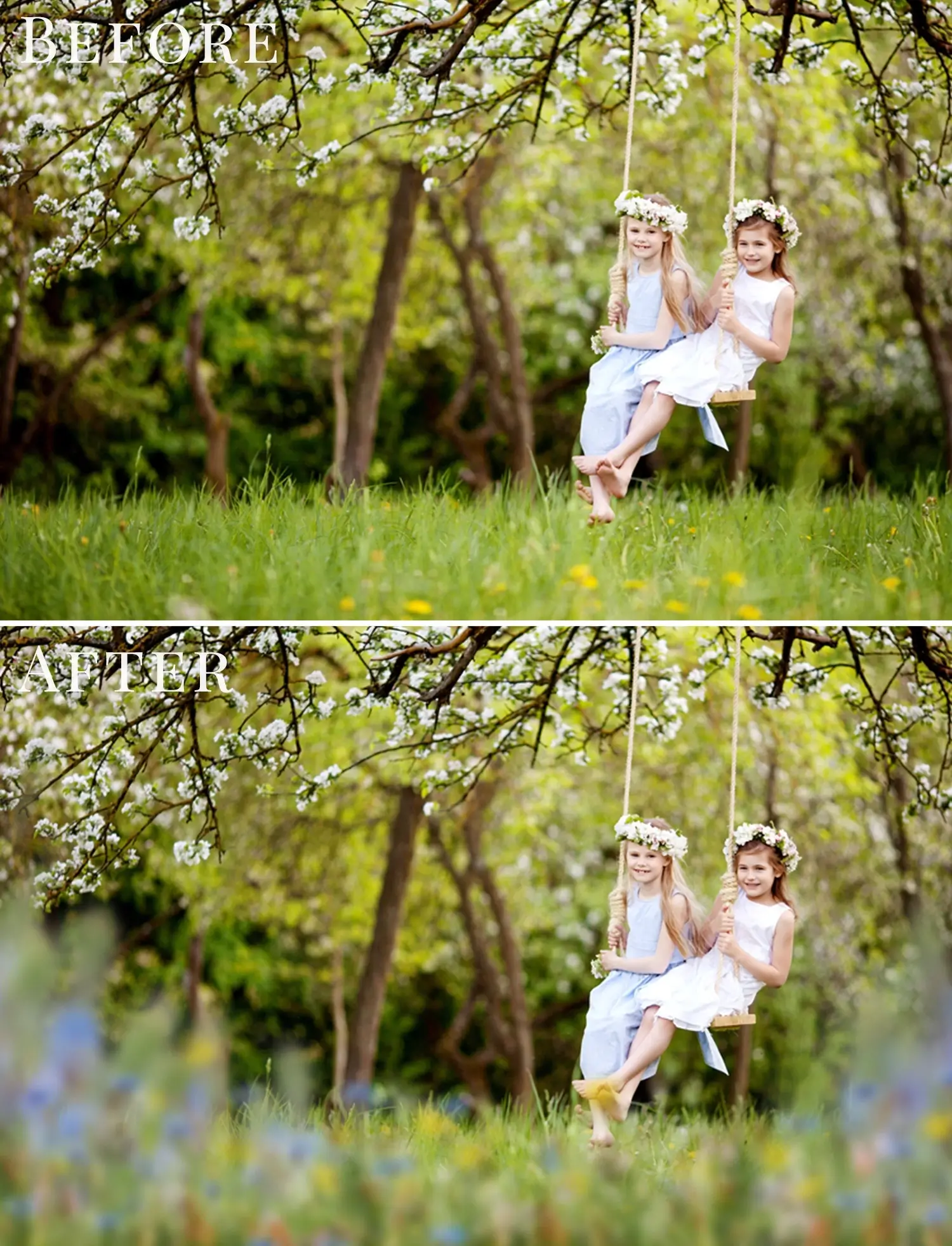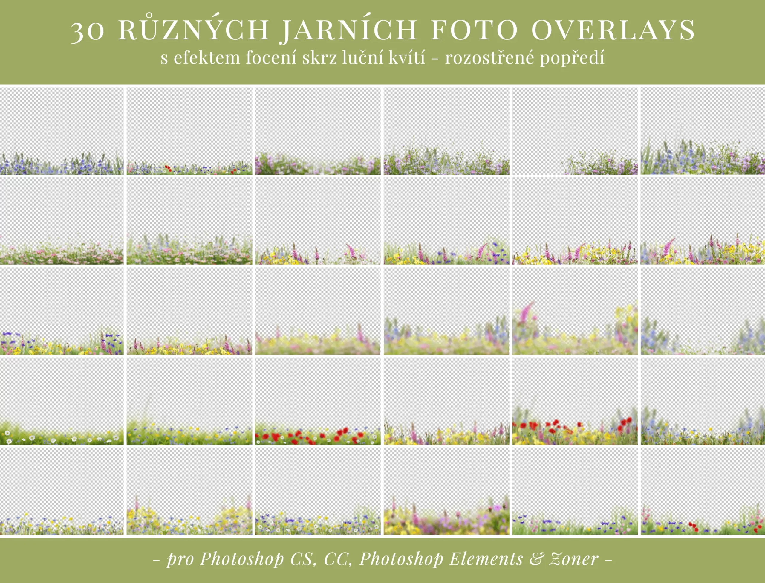 Kolekce 30ti různých foto overlays s motivy rozkvetlé jarní louky, které využijete především pro jarní focení dětí a rodin.