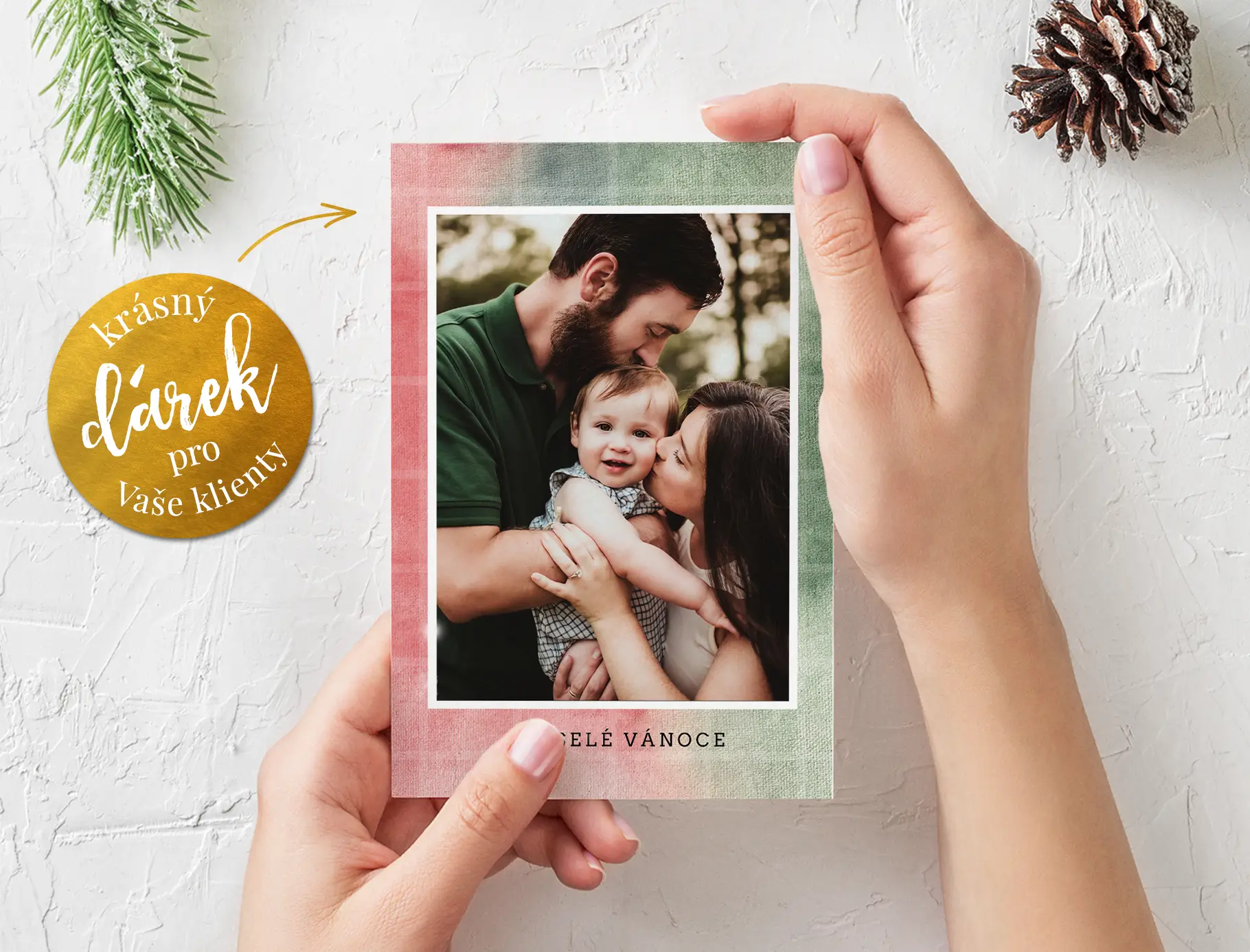 Vytvořte pro vaše klienty originální vánoční pohlednici s vlastní fotkou. Bude krásným dárkem třeba k vánočnímu focení.