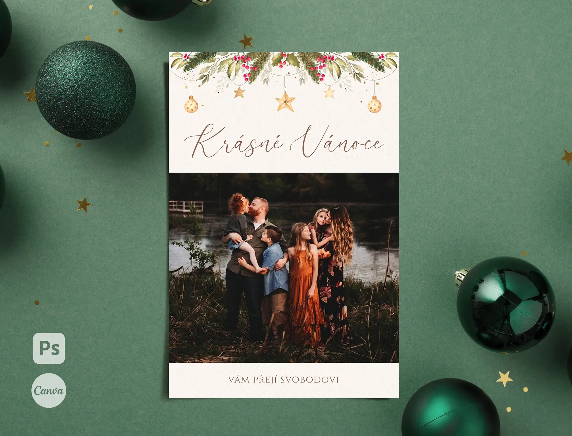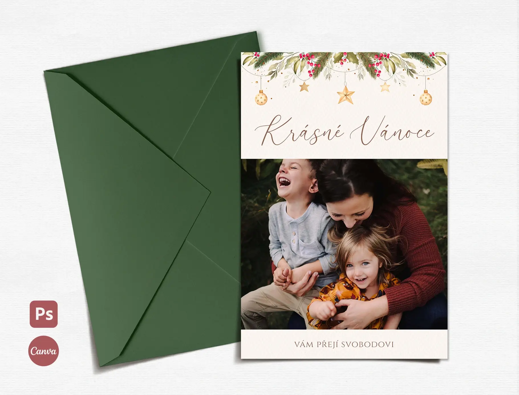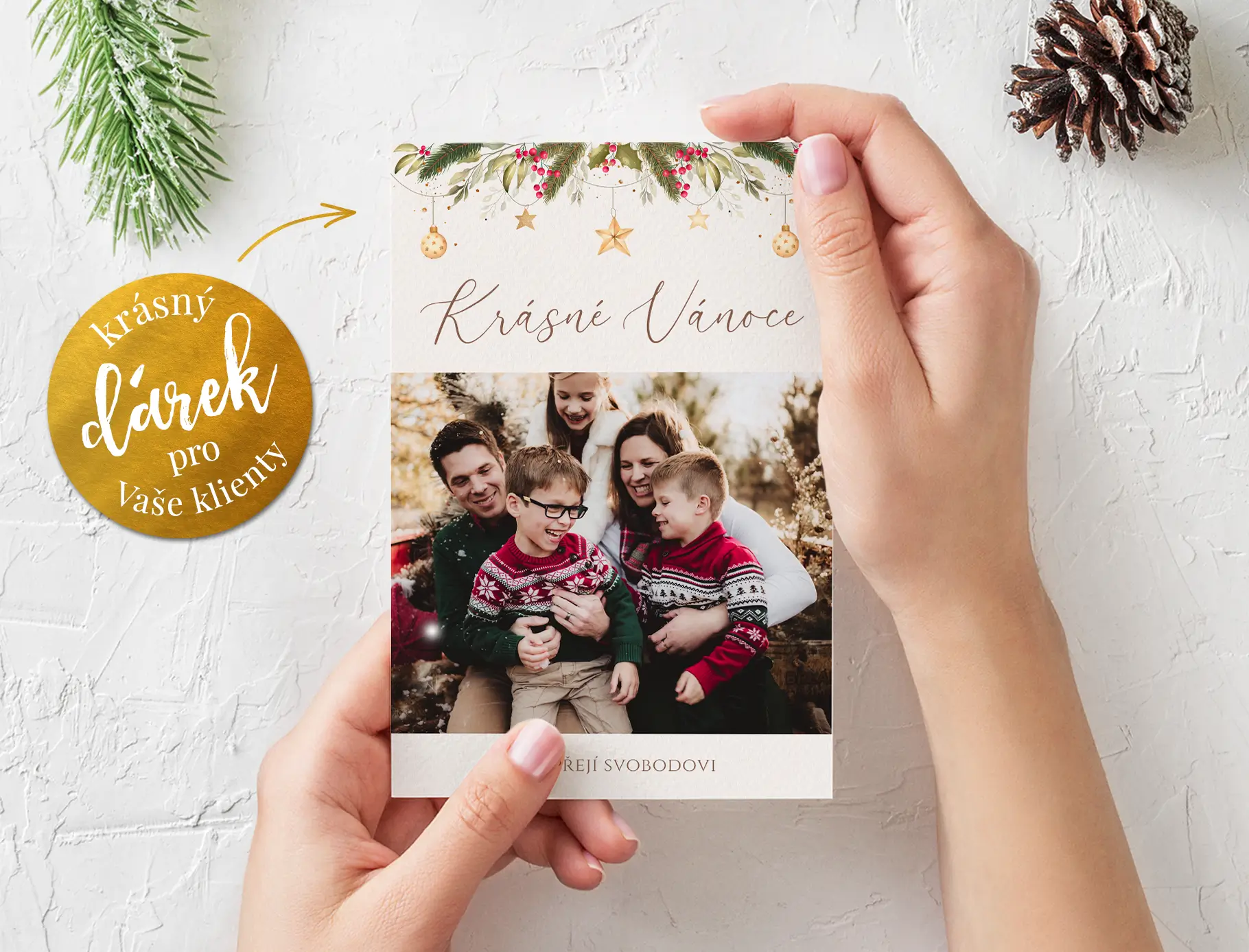 Vytvořte pro vaše klienty originální vánoční pohlednici s vlastní fotkou. Bude krásným dárkem třeba k vánočnímu focení.