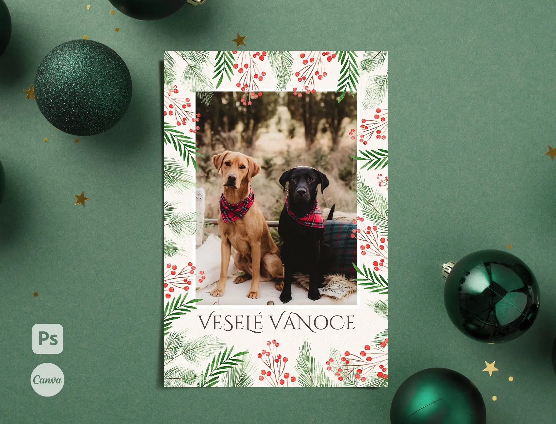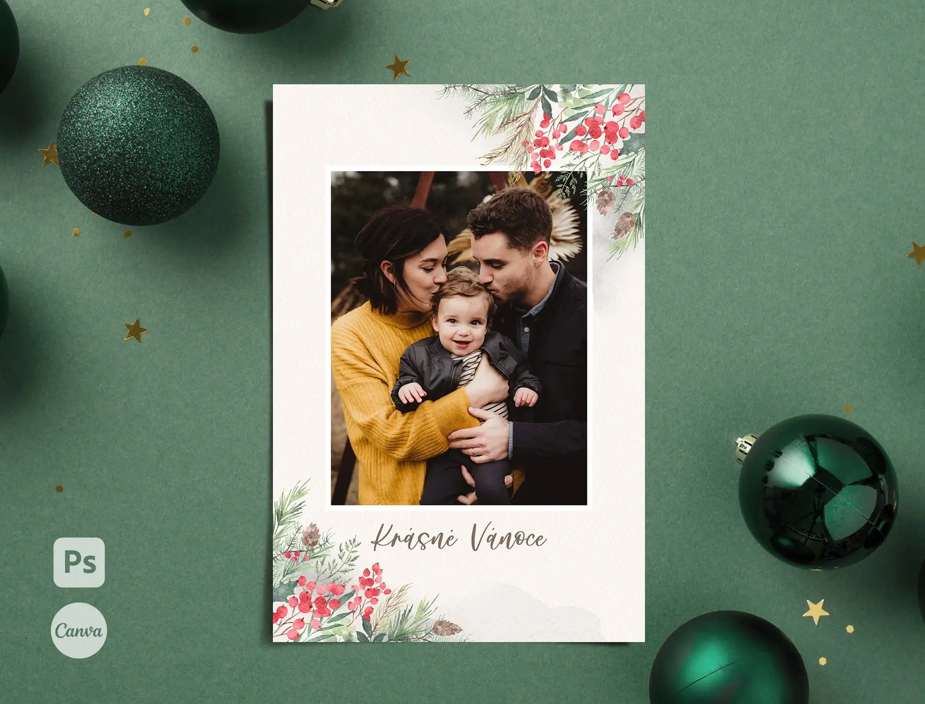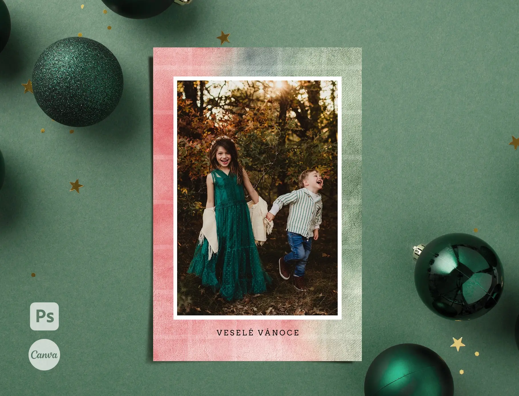 Šablony jsou snadno editovatelné ve Photoshopu nebo Canvě – během pár kliků vložíte fotku a změníte barvu textu. Velikost pohlednic je 10x15cm.