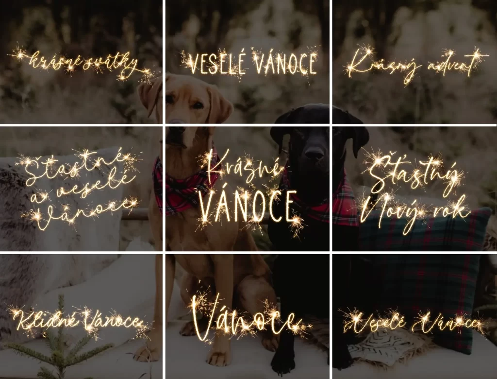 Vytvořte originální přání k Vánocům nebo Novému roku pomocí našich textových foto overlays v ručně psaném designu.