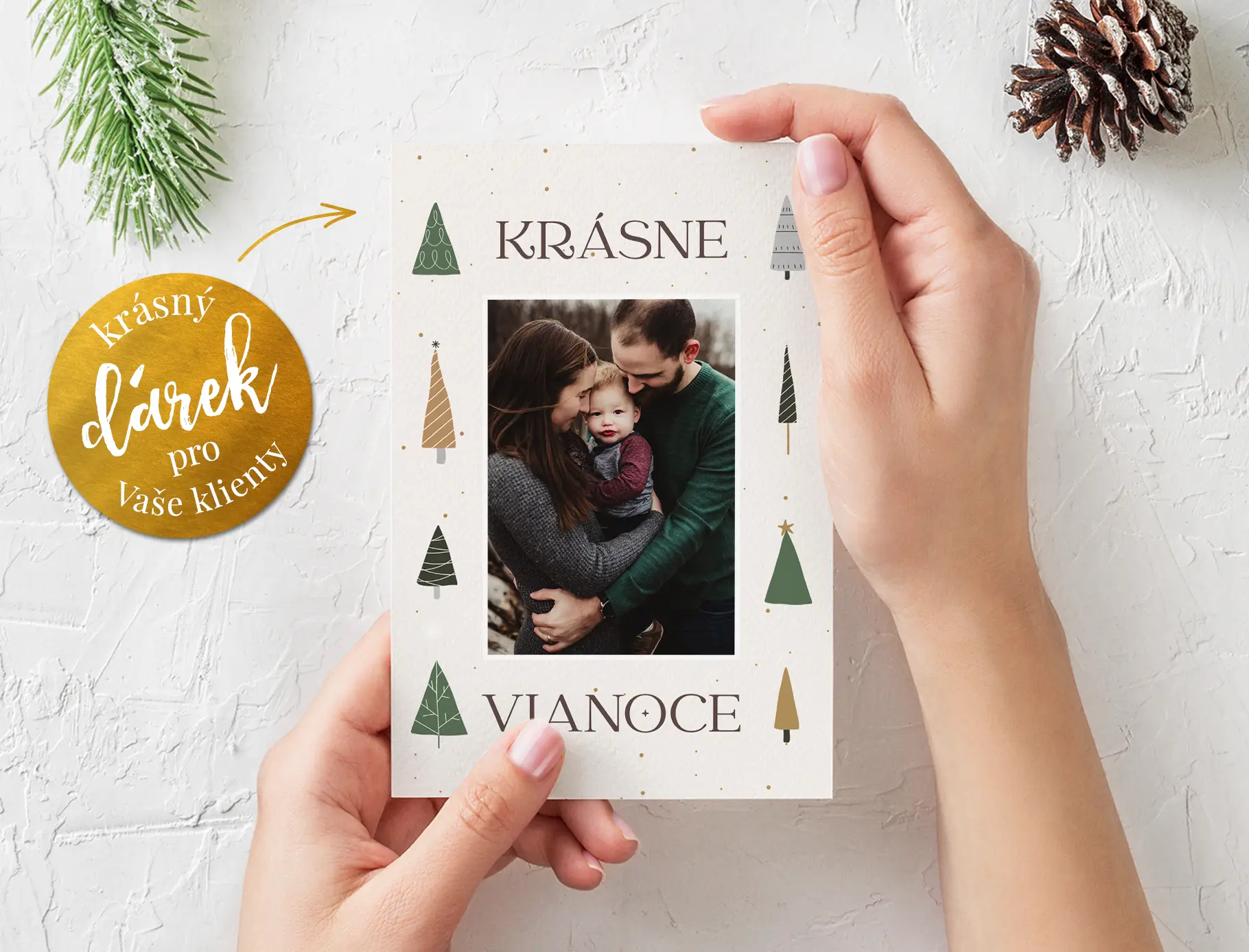 Vytvořte pro vaše klienty originální vánoční pohlednici s vlastní fotkou. Bude krásným dárkem třeba k vánočnímu focení.