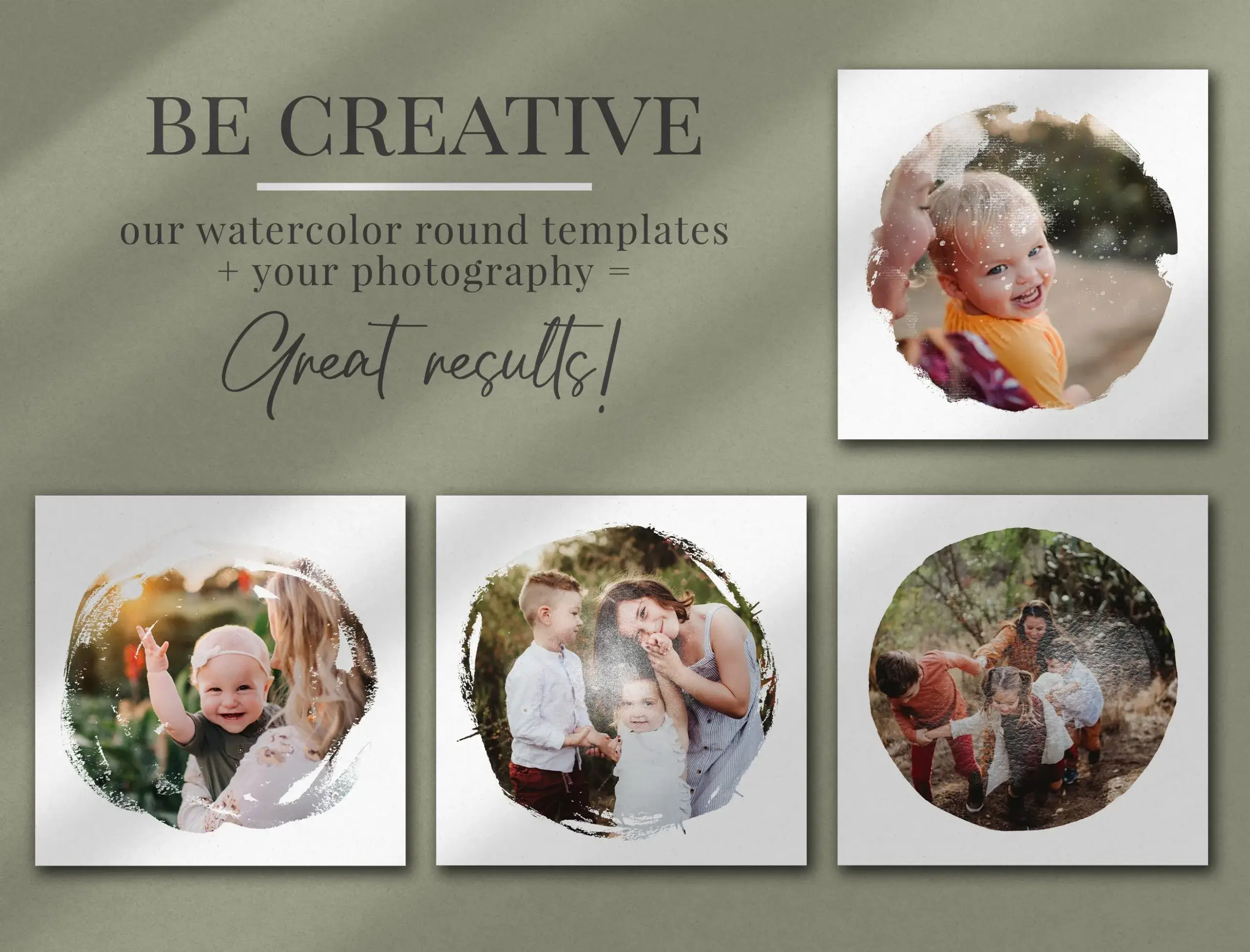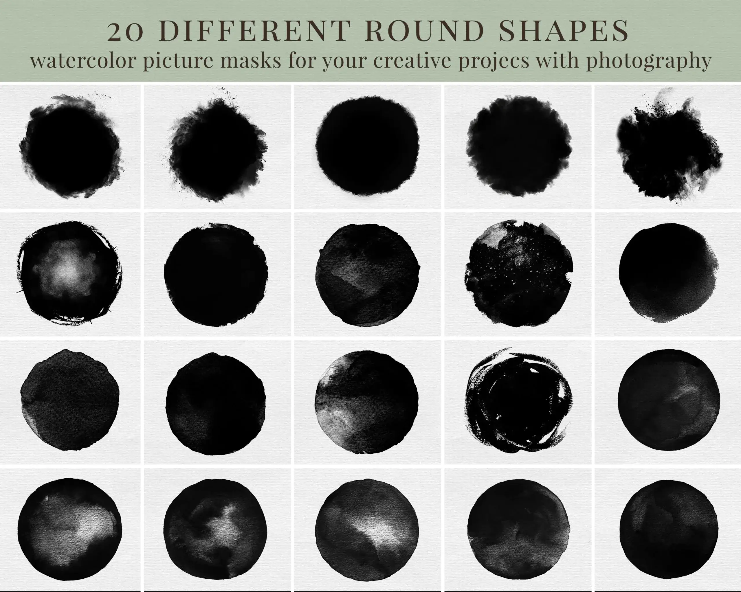 - 20 různých foto masek kulatého tvaru s akvarelovým efektem