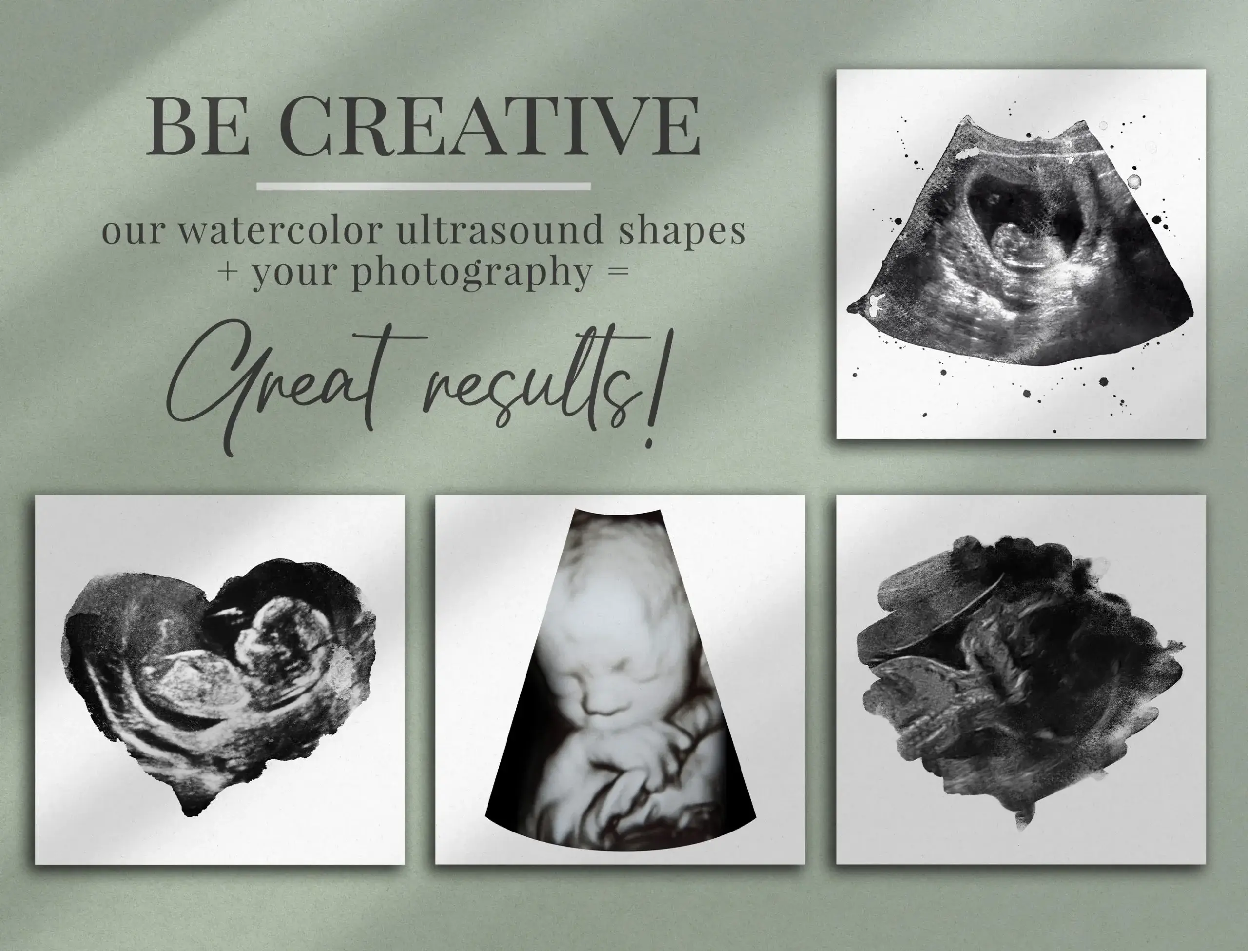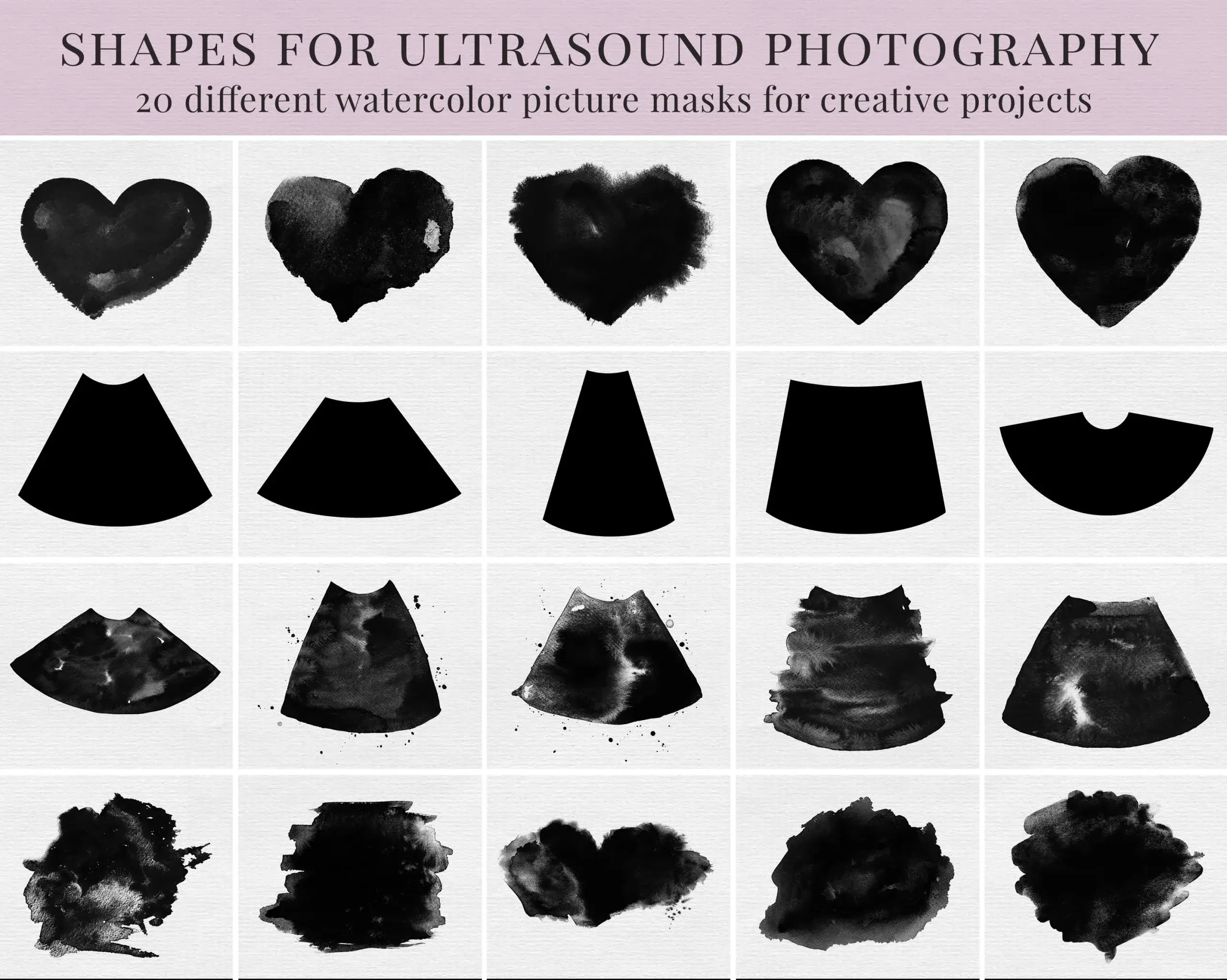 - 20 foto masek s akvarelovým efektem – tvary vhodné pro fotografie z ultrazvuku